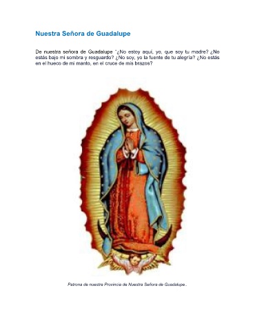 Patrona de nuestra Provincia de Nuestra Señora de Guadalupe..
