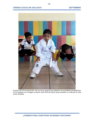 El grupo de 3ºA de preescolar, fue uno de los grupos que realizaron las actividades de taekwondo