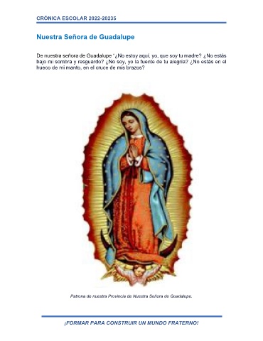 Patrona de nuestra Provincia de Nuestra Señora de Guadalupe.