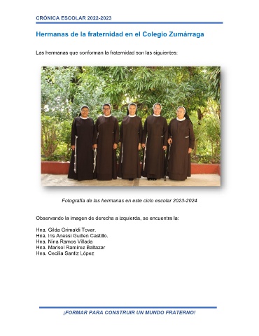 Hermanas de la fraternidad en el Colegio Zumárraga